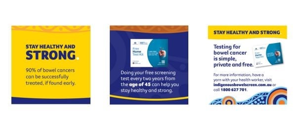 The following resources have been developed as part of a targeted campaign to support Aboriginal and Torres Strait Islander people, communities, and stakeholders to participate in the National Bowel Cancer Screening Program
