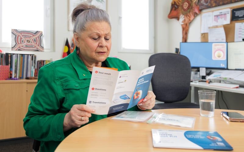 If you’re between 45 and 49, you can order your free kit. All it takes is to fill out a form via indigenousbowelscreen.com.au, call 1800 627 701, or ask your health worker.