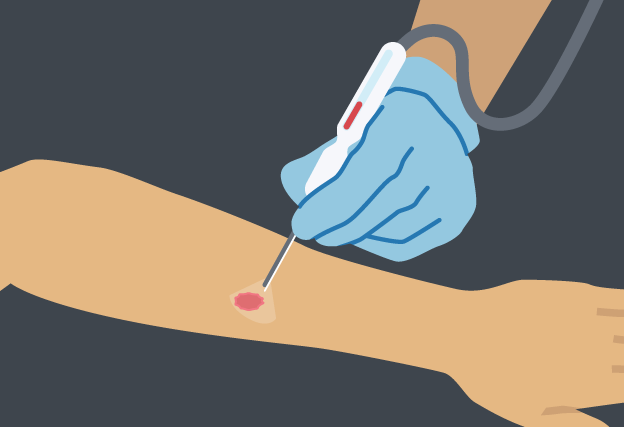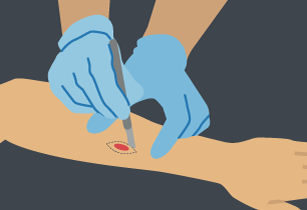 Excisional biopsy: A small surgical procedure where local anaesthetic is injected into the area near the suspicious growth. The doctor will remove the spot and a small area of tissue around it using a scalpel. Stitches will be used to close up the wound and the sample will be sent to a laboratory for examination.