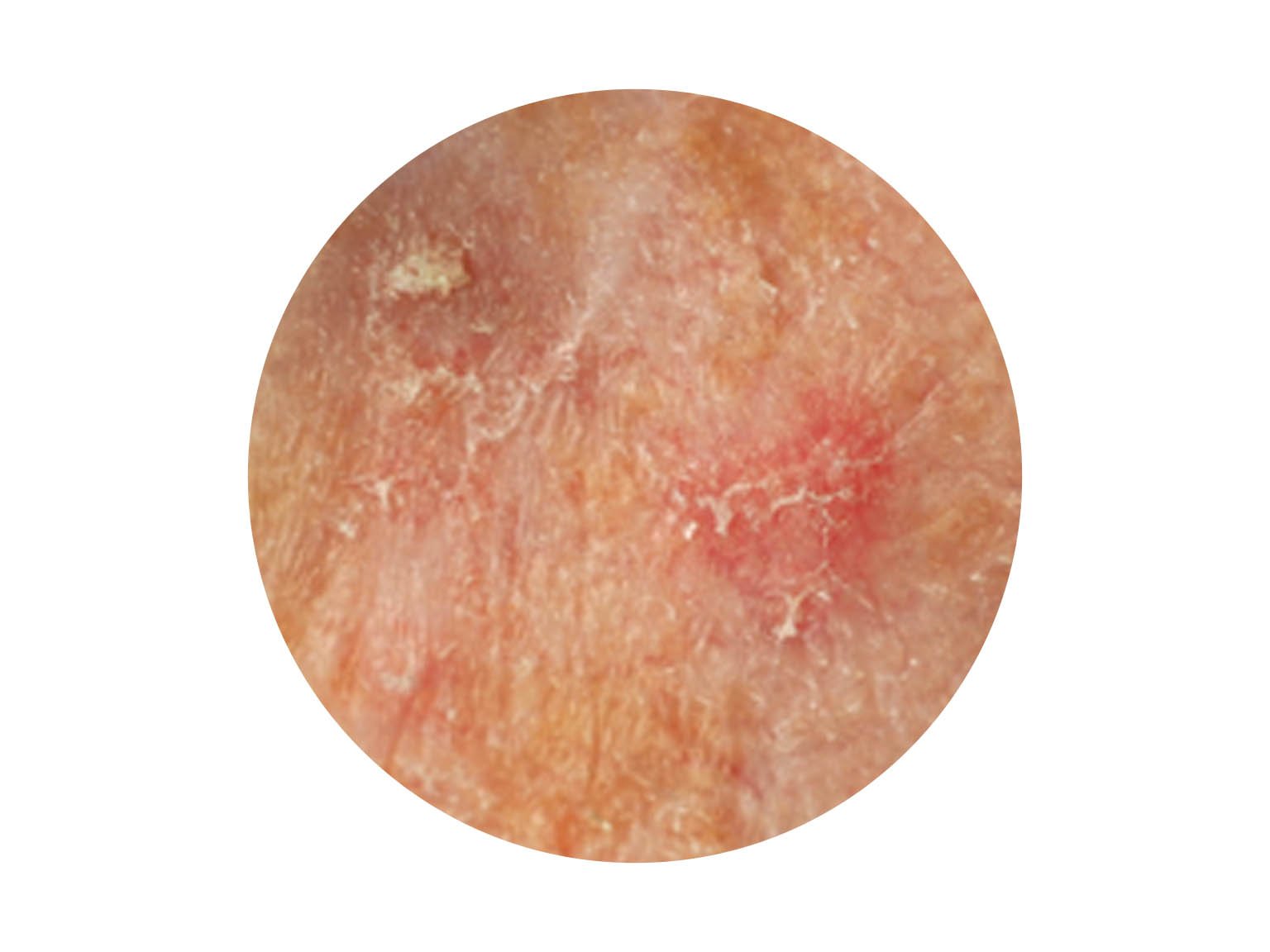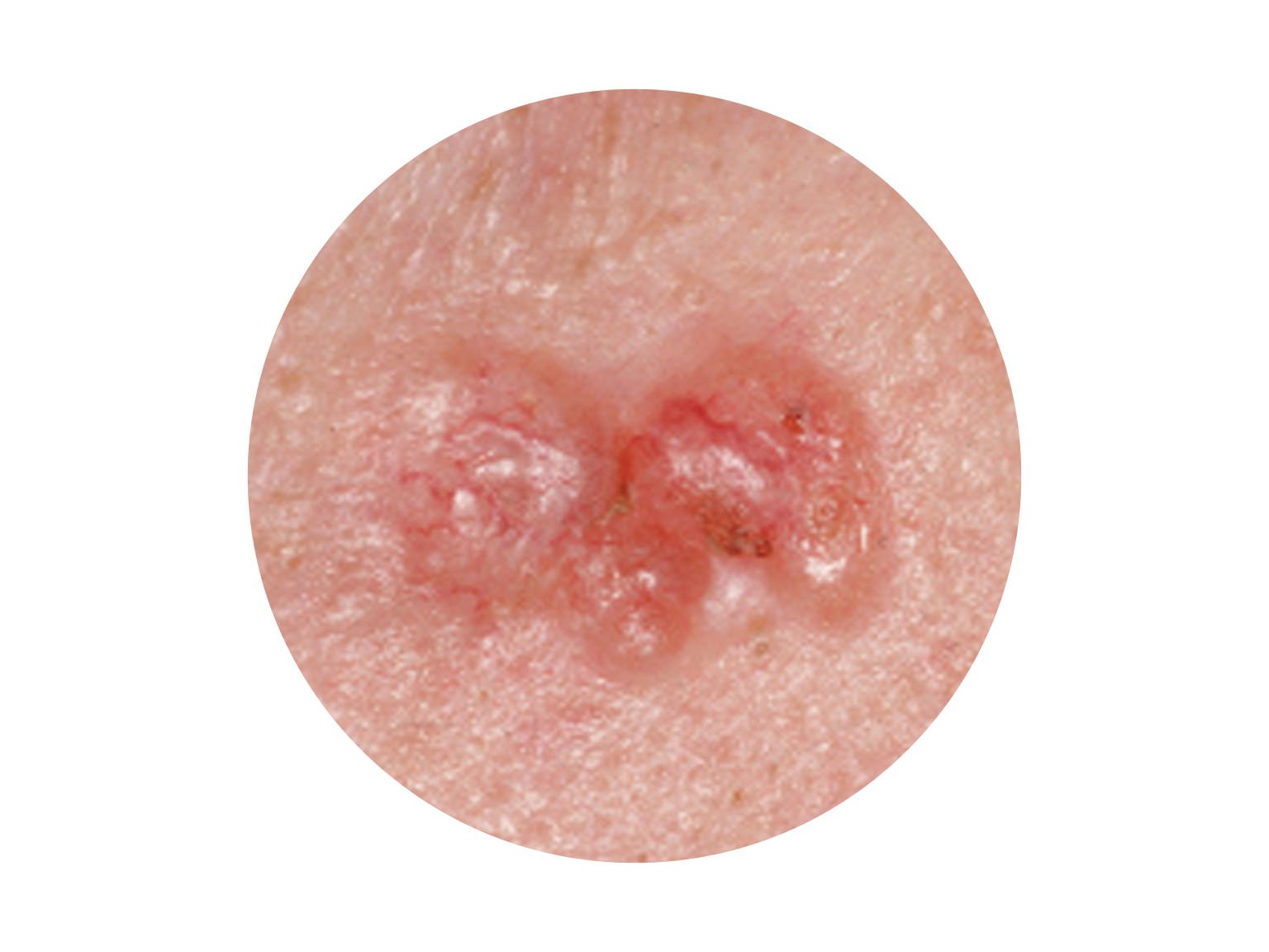 | the most common signs | a pink, pearl-like, flat or raised lump; shiny, pale/ bright/dark pink scaly area | a thick scaly lesion; a fast-growing pink lump; a red, scaly or crusted spot |